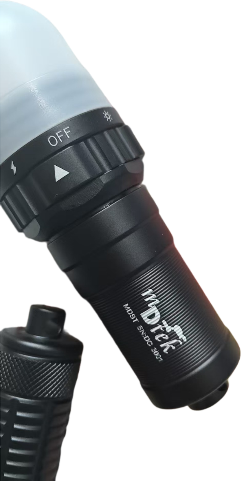 El MDT5K combina un LED SBT90.2 de alto rendimiento con 5.000 lúmenes reales y un haz concentrado de 8º, ofreciendo una penetración superior en entornos exigentes. Su batería 6×18650 entrega hasta 120 min al 100%, garantizando continuidad operativa en inmersiones críticas. Construido en aluminio anodizado de paredes gruesas, supera pruebas reales de 220 PSI (~145 m) y resiste salinidad, golpes y uso intensivo. El control rotatorio mecánico asegura fiabilidad total incluso con guantes. Un foco diseñado para quienes necesitan potencia, autonomía y durabilidad profesional sin margen de fallo.